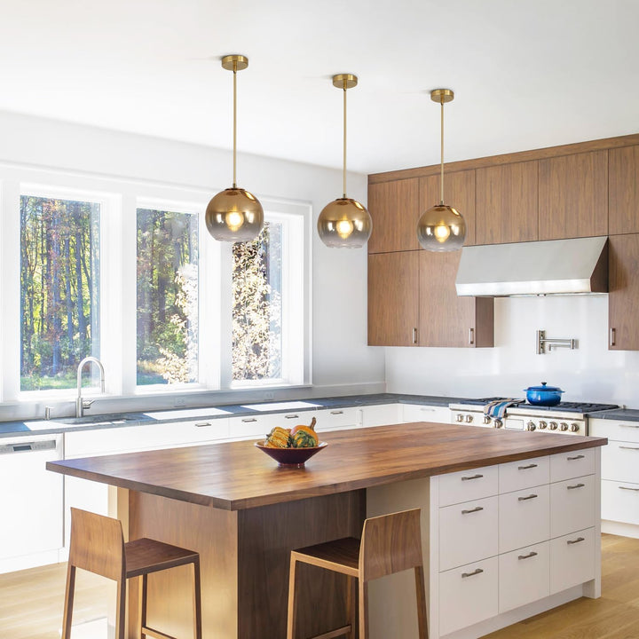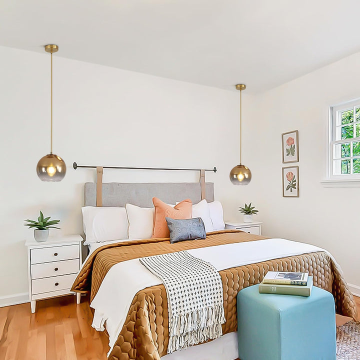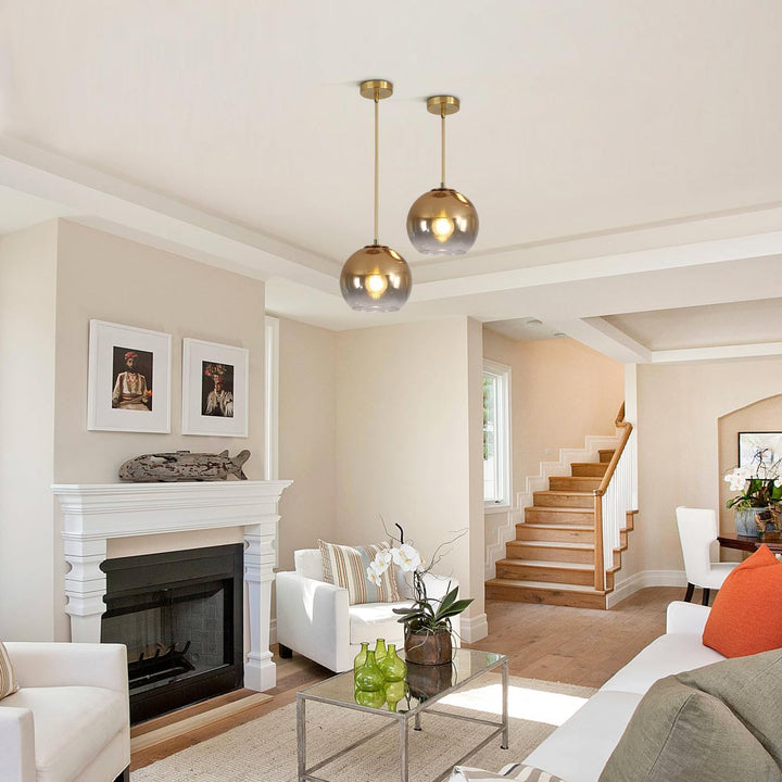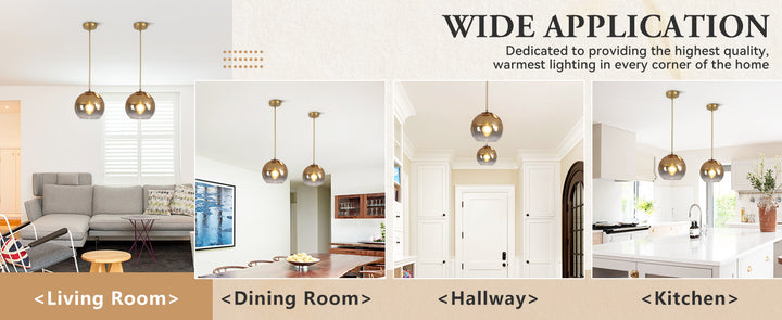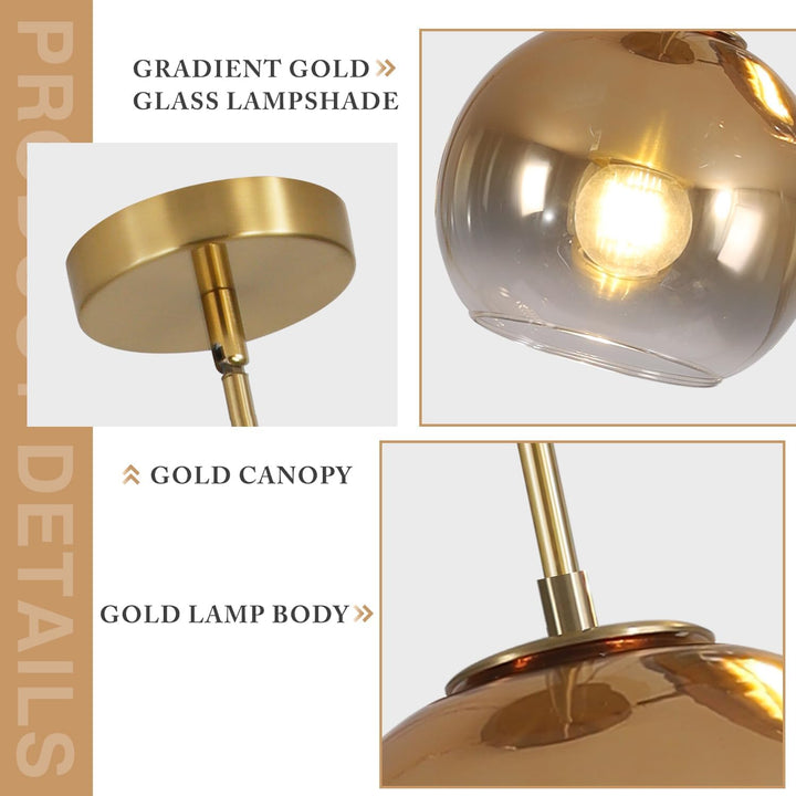 - Gorgeous Stunning Design: The mid century modern glass pendant light have a gradient gold glass globe shade, which is eye-catching and unique, add a playful touch of modern feeling to your space, but also a quiet tone of vintage-looking to your room, becoming the most elegant decorative element in the room