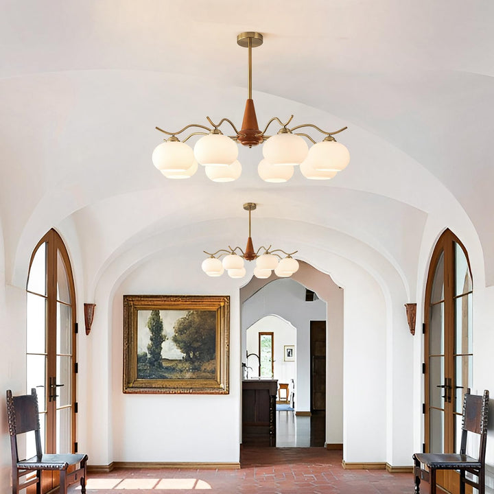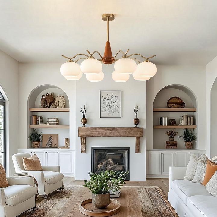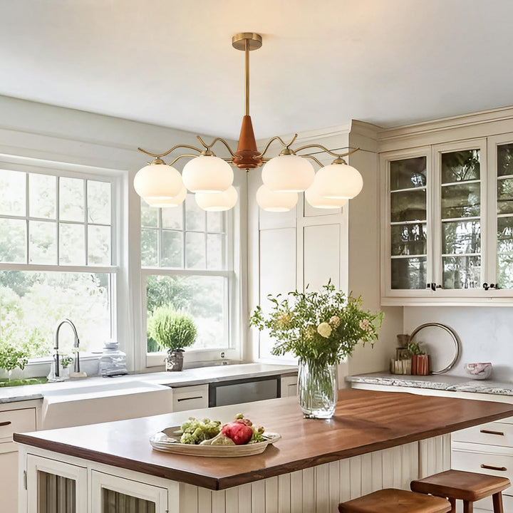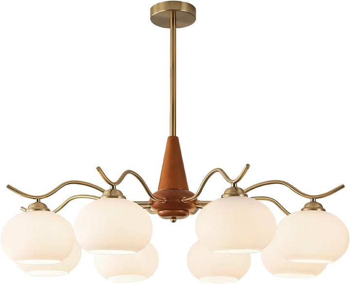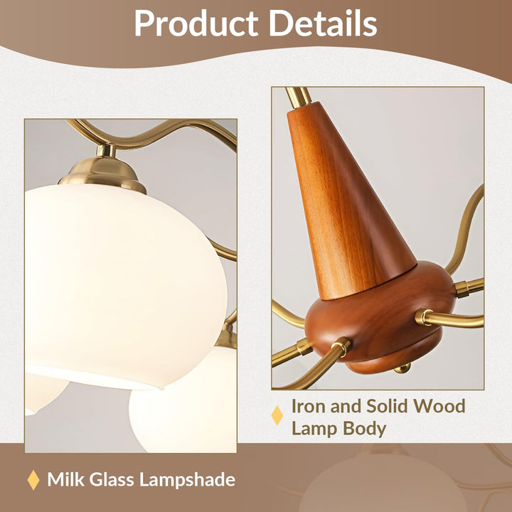 • 【Rustic Farmhouse Design】This mid century modern globe chandelier light fixture combines a metal iron frame, natural wood, and thickened glass materials. Five milk glass globe shades radiate outward from the central rod. Its unique design softens and diffuses light downward, creating a warmand cozy ambiance. The solid wood bar complements a variety of spaces, from modern to medieval, serving as a finishing touch to elevate the quality of your home decor.