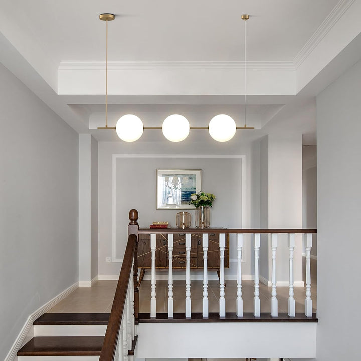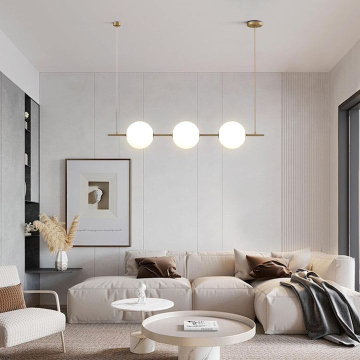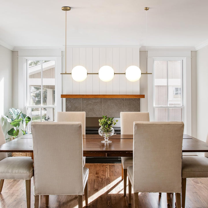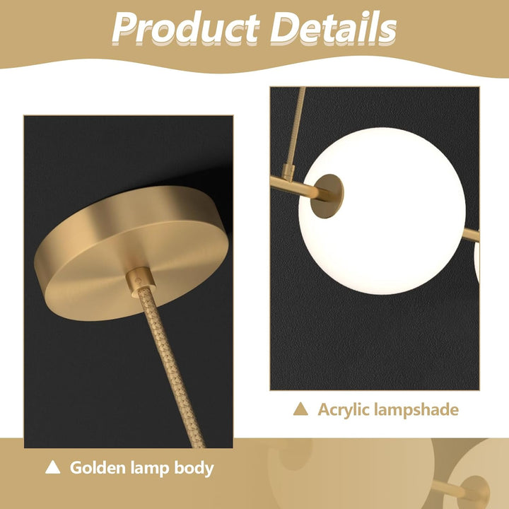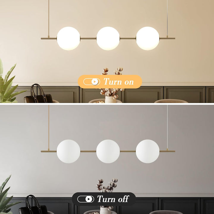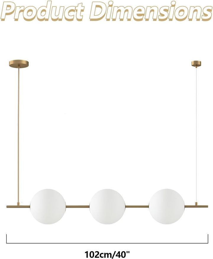 • 【Gold Linear Pendant Light Dimensions】Modern globe linear chandelier length: 40 inches (102 cm), canopy: 4.7 inches (12 cm). Light source: LED, voltage: 110-240V, suitable for worldwide. This modern dining room lighting is equipped with 130cm (51.2 inches) long suspension cords, allowing for free height adjustment to suit various hanging scenarios such as dining tables or entryways, ensuring light is precisely directed where needed.