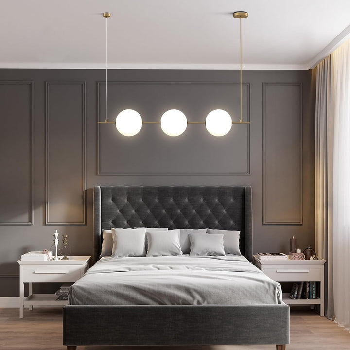 • 【Stylish & Minimalist Design】This modern gold chandelier redefines modern luxury with its sleek brass-finished frame and three luminous spherical shades. The clean lines and sculptural silhouette blend minimalist artistry with understated opulence, transforming your ceiling into a gallery-worthy focal point — a design statement that feels both contemporary and enduring.