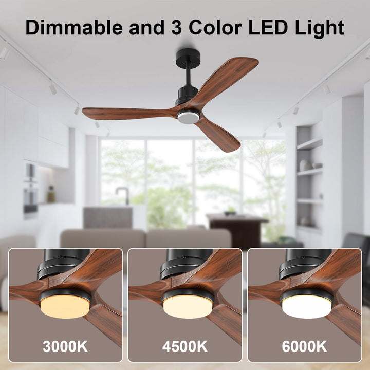 - Ceiling Fan with Remote - 3 dimmable light colors(3000K warm light, 4000K natural light, 6000K cool light), 10%-100% brightness adjustment. Save energy and change the visual appearance and mood of your space.