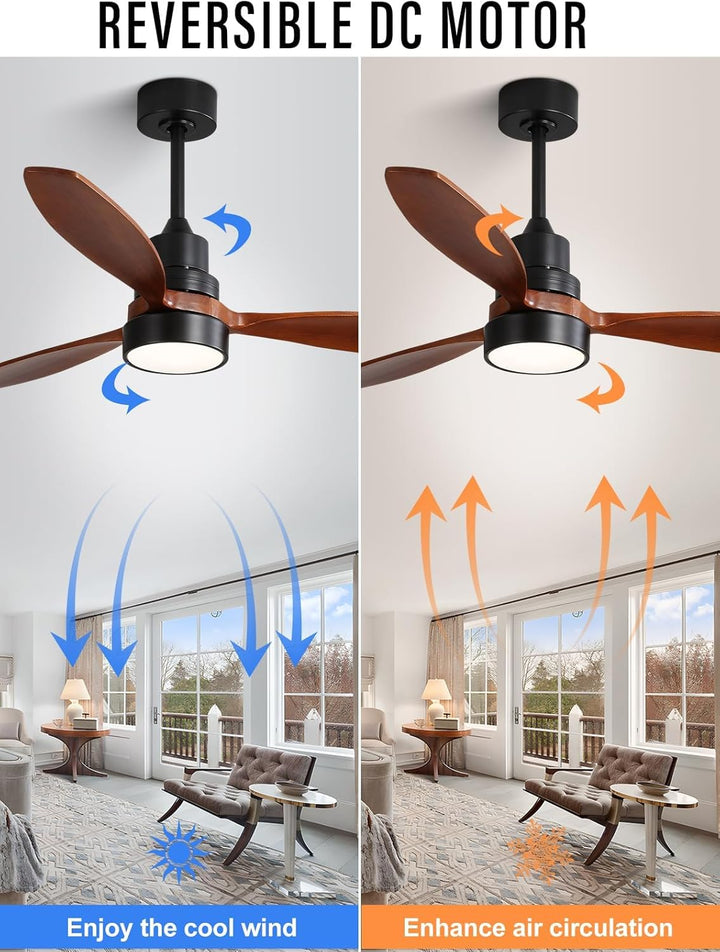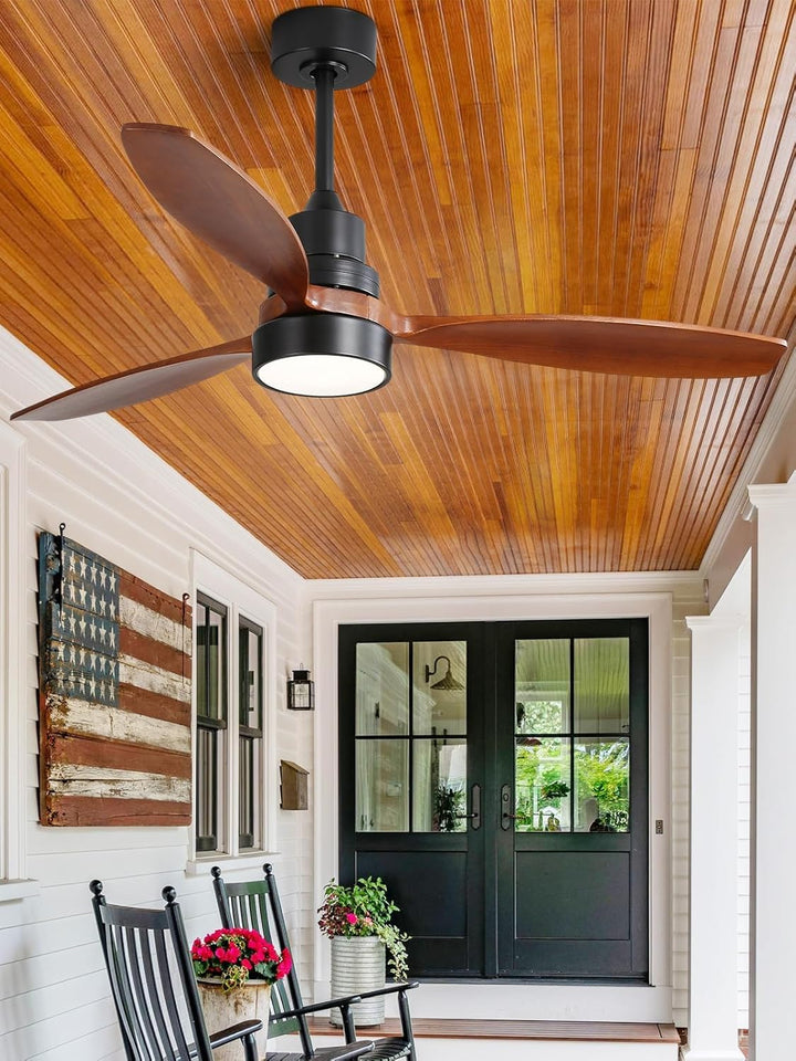 - Modern Ceiling Fan: This wood ceiling fan stylish design fits modern and farmhouse styles. Moisture-resistant finish, perfect for any indoor and covered outdoor space such as bedroom, living room, patio. Most Parts are already assembled