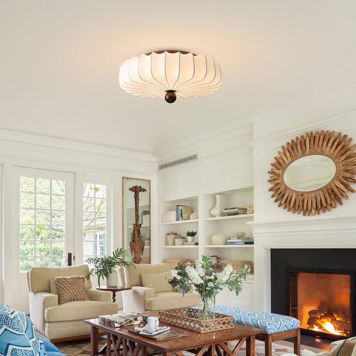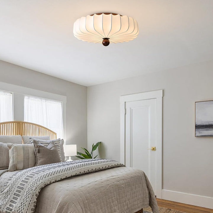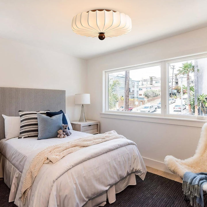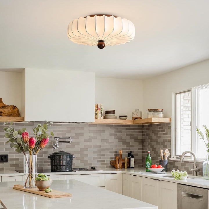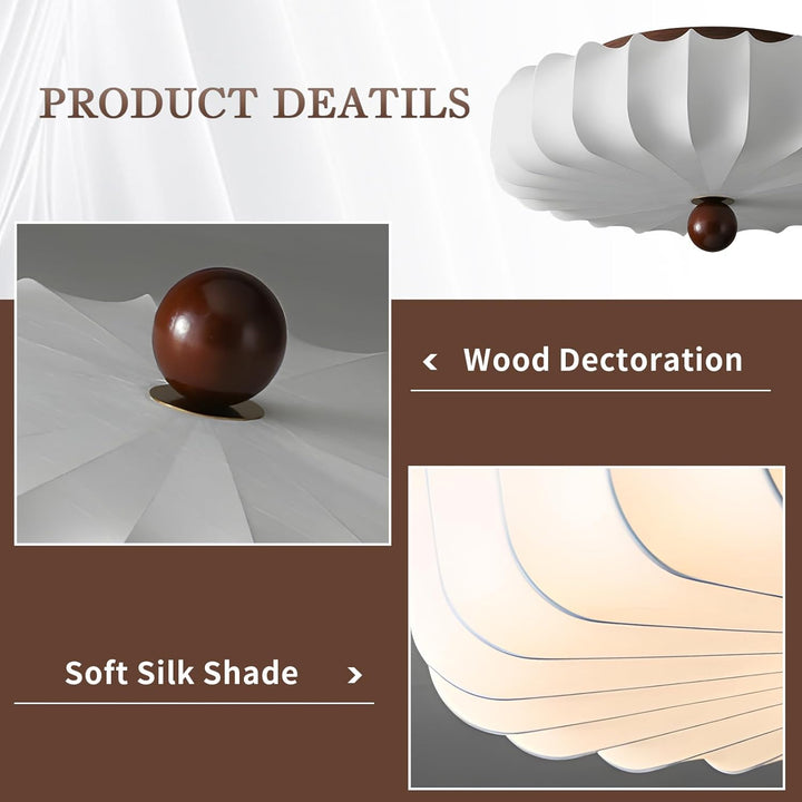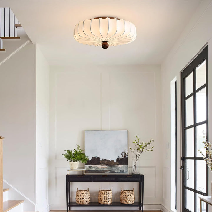 • Imitation Silk Shade: The fabric flush mount light lampshade is made of artificial silk fabric material with fine texture and soft, blending modern minimalist design with a soft white decor, creates a warm, romantic ambiance to your space