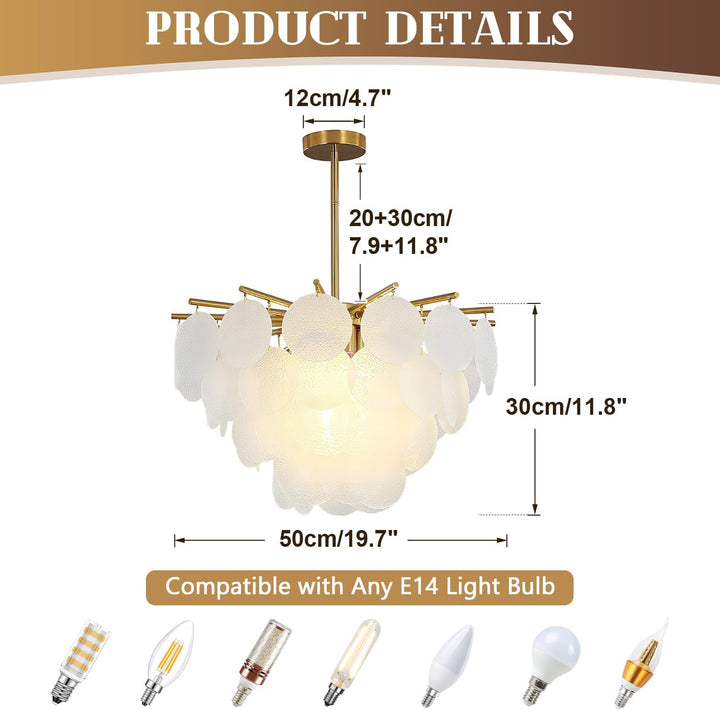 • Crystal Glass Chandelier Size: The coastal chandeliers for entryway width: 19.7”(50cm), height: 11.8”(30cm), canopy: 4.7”(12cm). Light source: E14, voltage: 110-220V for worldwide