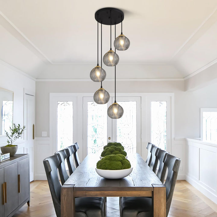 KCO Lighting 5 Light Cluster Pendant Lighting Black Globe(L7230)