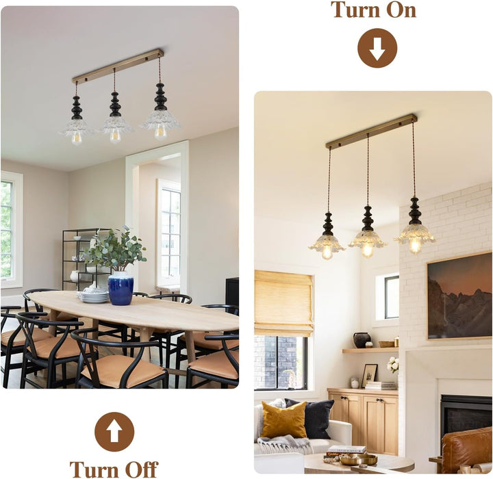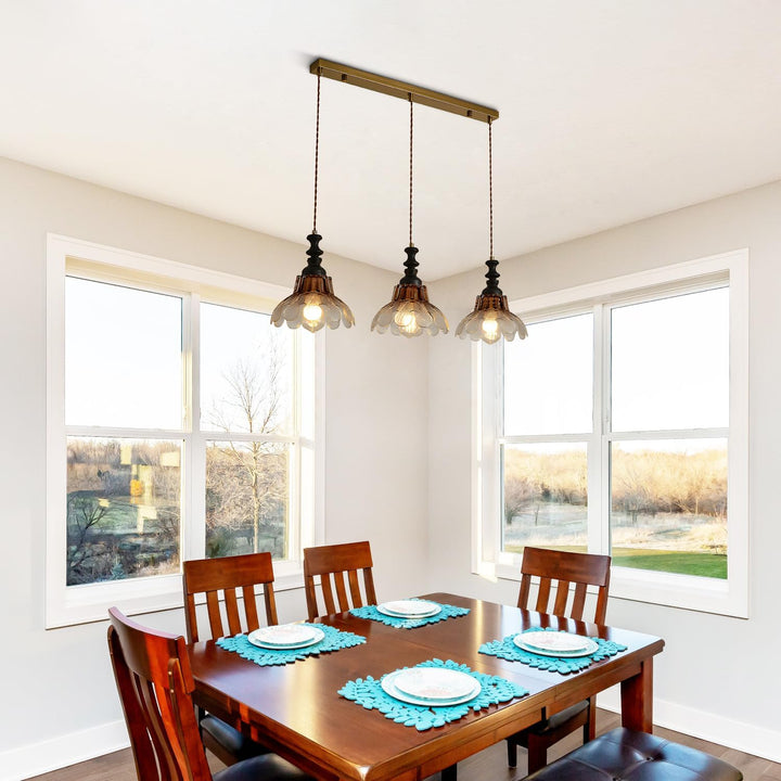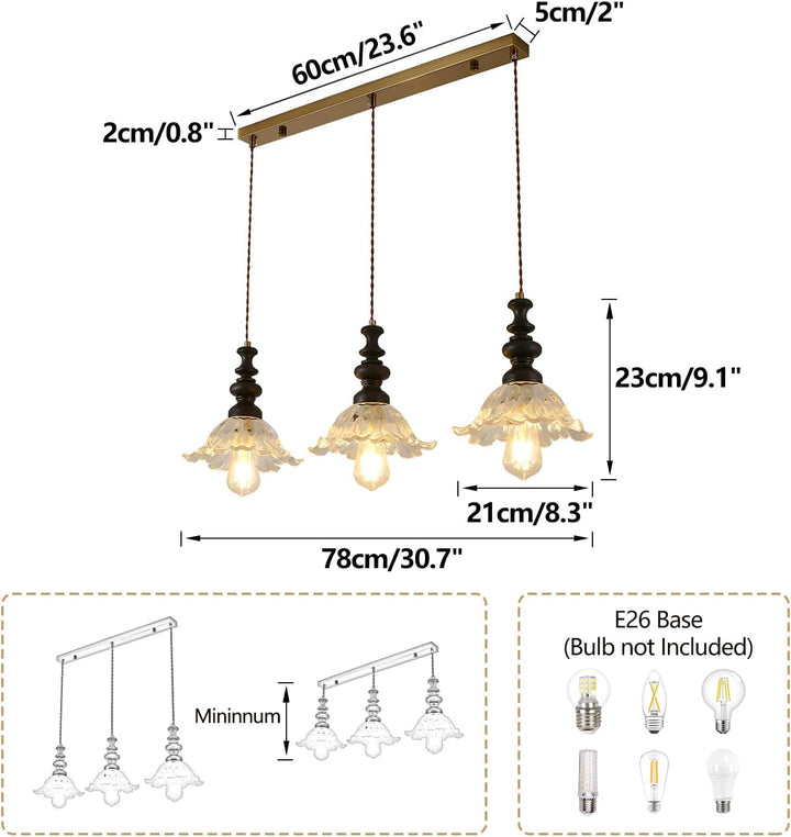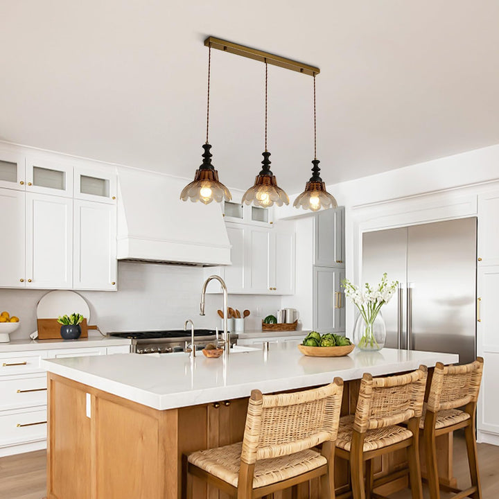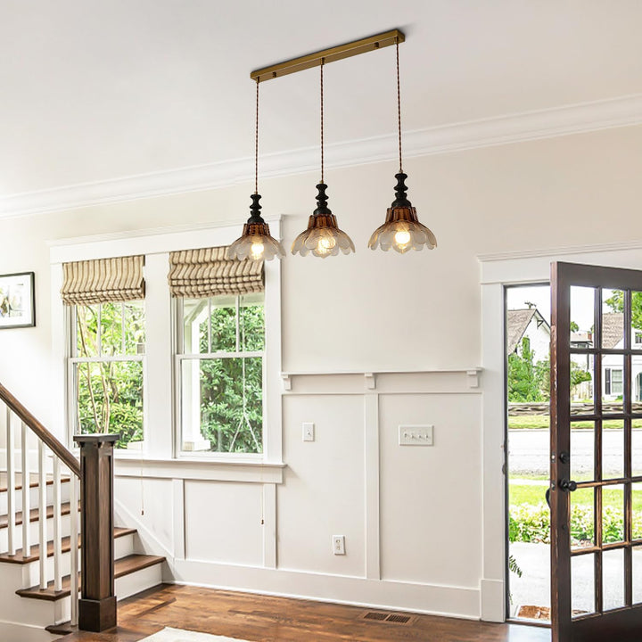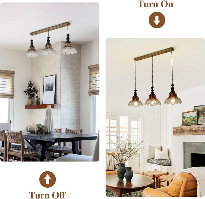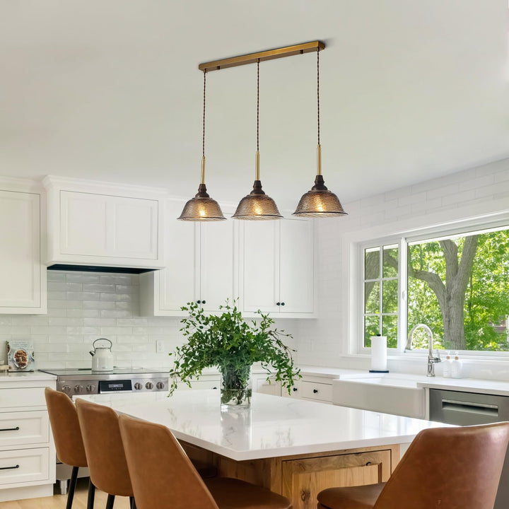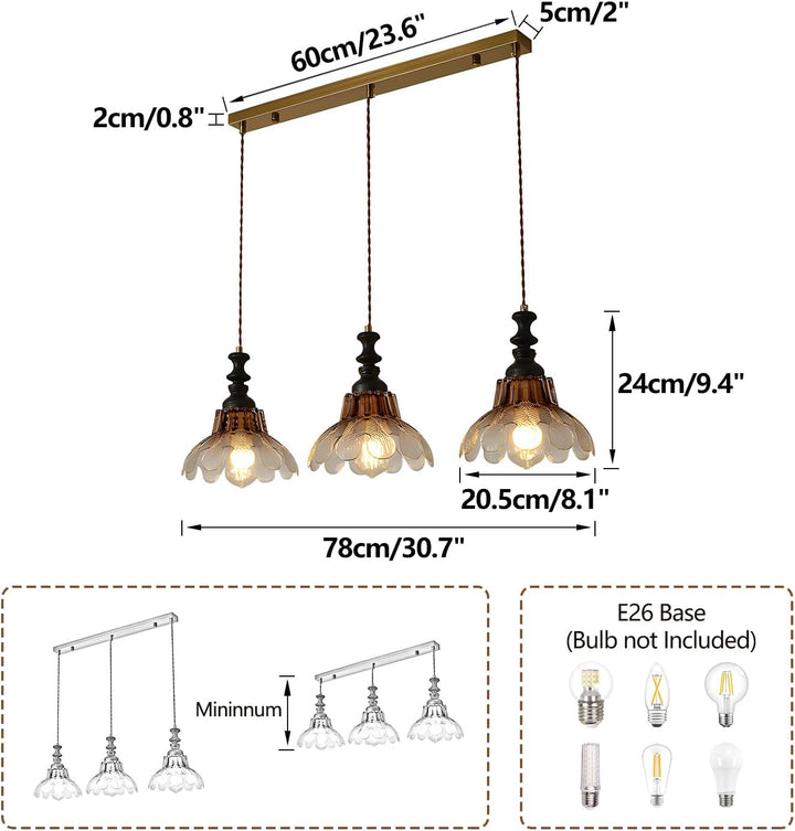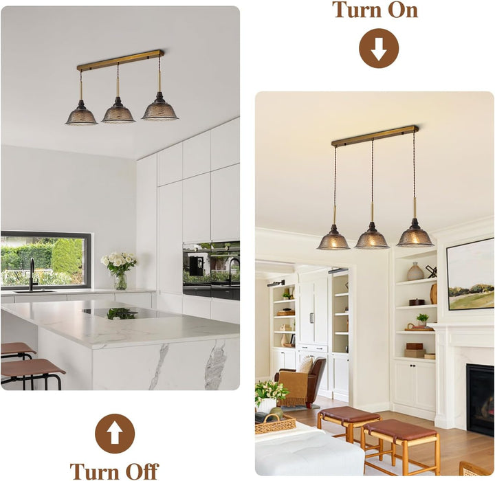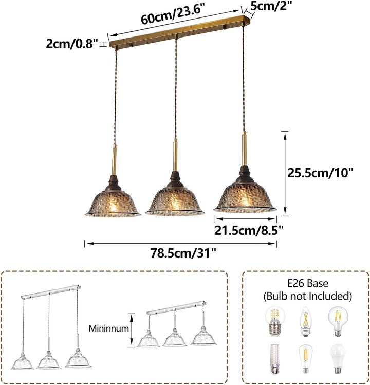 - Adjustable Cord: The gold 3 light pendant lighting features three cables that are the same length, you can adjust the hanging height to achieve various arrangement layouts. The large kitchen island pendant light can be installed on sloped, vaulted, slanted and flat ceiling