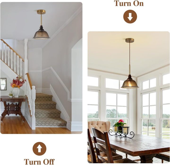 - Farmhouse Modern Look: The single glass pendant lighting is shaped like a bowl, that brings a modern and elegant touch to your home. The brushed brass gold finished metal lamp body adds a sophisticated touch that perfectly complements different interior styles